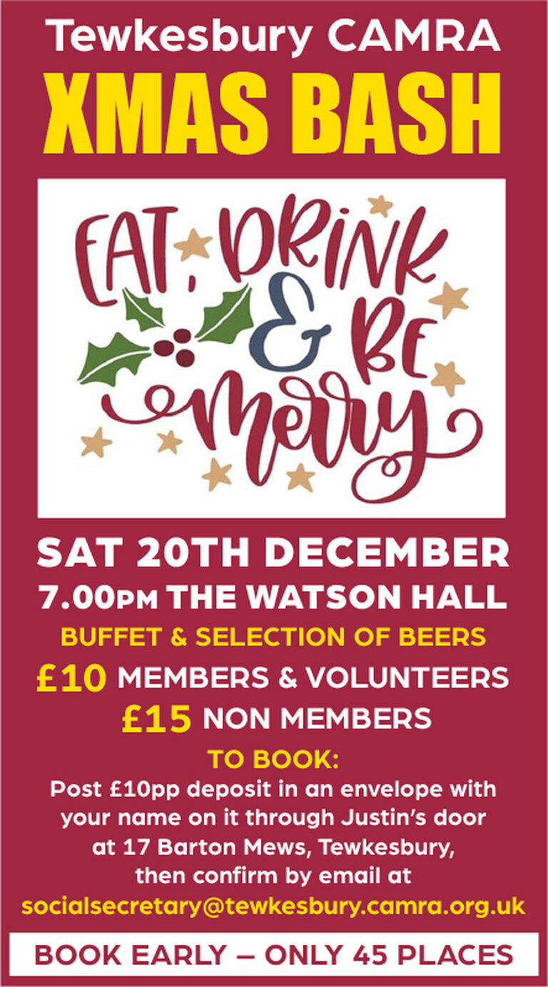 Branch Social trip on the 16th Oct to Ledbury on a minibus leaving the Crescent at 18:30 leaving Ledbury at 22:30, £10 each.