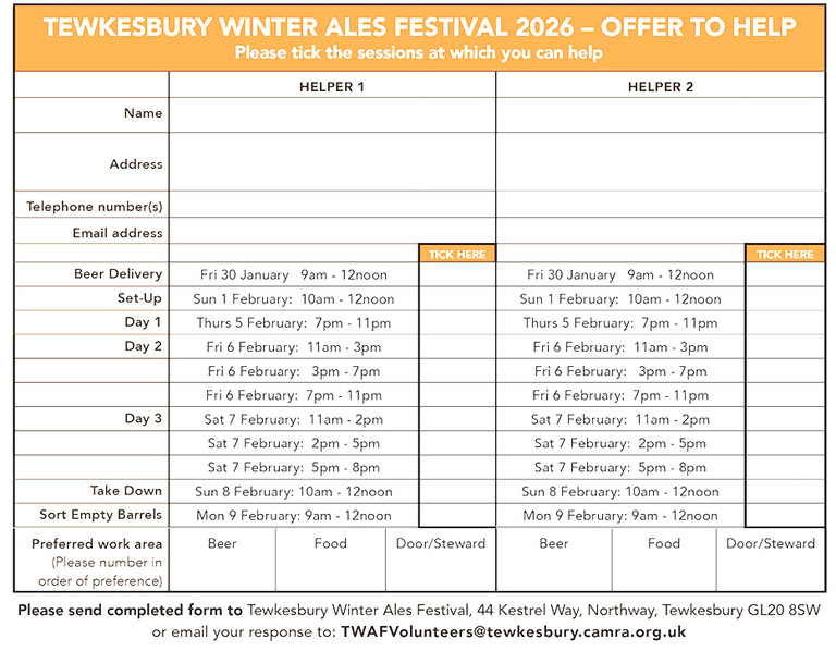 We cannot run this festival without volunteers so please consider lending a hand by completing the following form - Volunteer Form and E Mail it to Ben and Steve at ku.gro.armac.yrubsekwet@sreetnulovFAWT