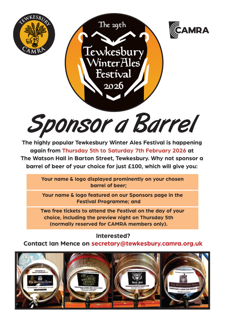 Why not sponsor a barrel and promote your business or special occasion. for further details contact Ian Mence ku.gro.armac.yrubsekwet@yraterces
